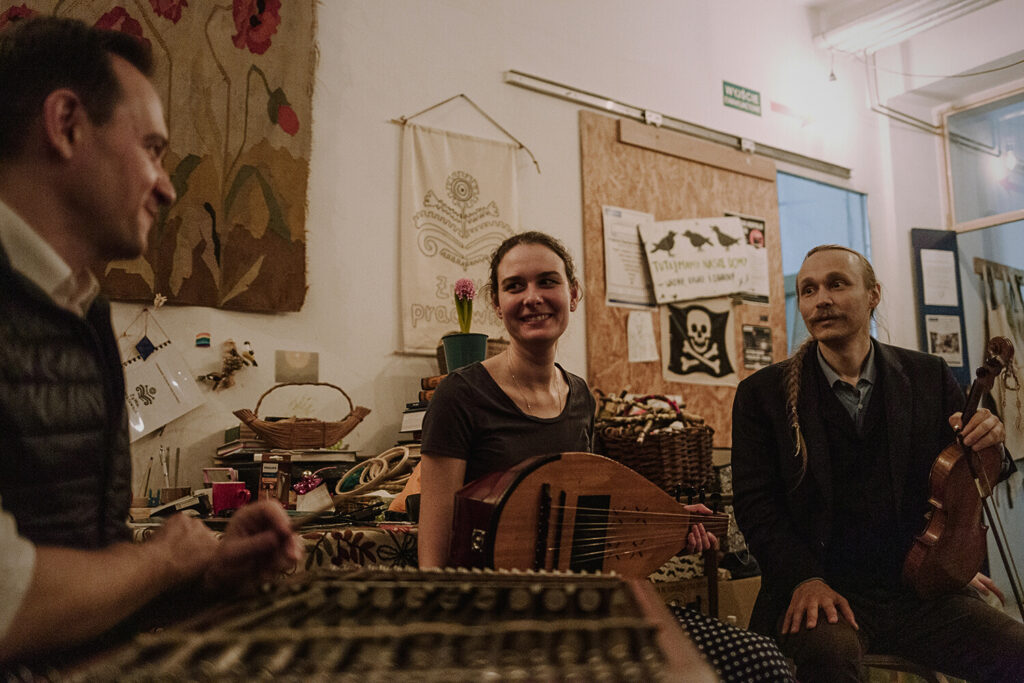 Powiedzieć, że Potańcówka z muzyką tradycyjną na żywo była udana to jakby nic nie powiedzieć. To była po prostu muzyczno-taneczne misterium. Oprócz wspaniałych gości swoją niesamowitą grą na instrumentach czarowali Magda Olkiewicz i  Farkas Gyulai z kapeli Bratanika oraz Paweł Iwan – nasz zaprzyjaźniony człowiek-orkiestra z Kapeli OzimkowiczaSamo PołudnieHajda Banda. Przy takiej oprawie trudno nie poddać się melodiom i zapomnieć o całym świecie.